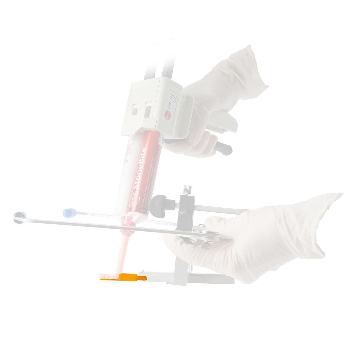 Axiojigs für den einmaligen Gebrauch machen die Desinfektion leicht und einfach. Gelbe Axiojigs sind körperverträglich und werden nach EU-Normen kontrolliert. Axiojigs sind die Verbindung zwischen Patient und Transferbogen und werden mit einem kleinen Stück Bissregistriermaterial im Oberkiefer fixiert