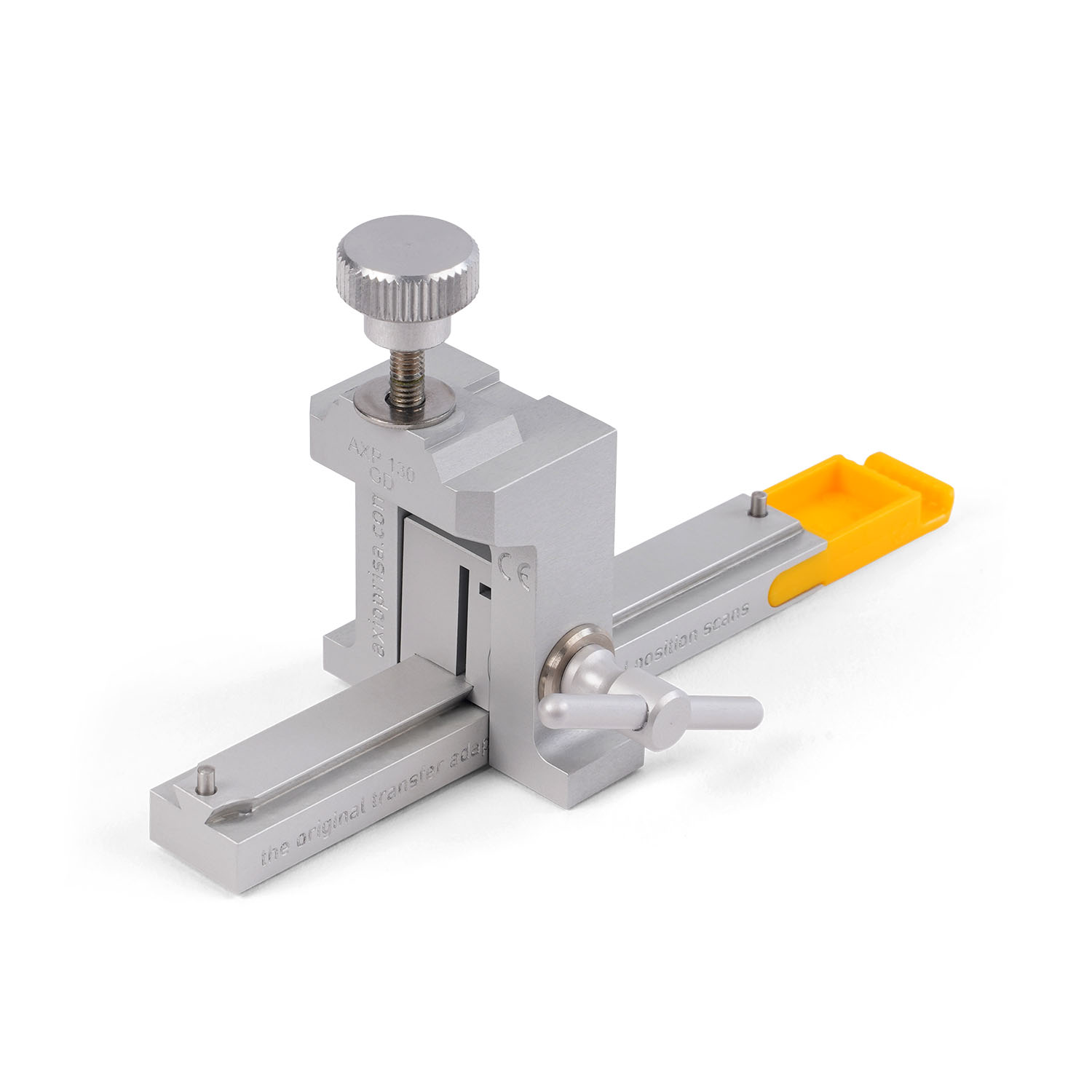 Axiojigs für den einmaligen Gebrauch machen die Desinfektion leicht und einfach. Die gelben Axiojigs aus Kunststoff sind körperfreundlich und werden nach EU-Normen kontrolliert. Axiojigs sind die Verbindung zwischen Patient und Übertragungsbogen und werden mit einem kleinen Stück Bissregistriermaterial im Oberkiefer fixiert. Dies gewährleistet einen perfekten Sitz auf den Schneidezähnen während des Scanvorgangs.